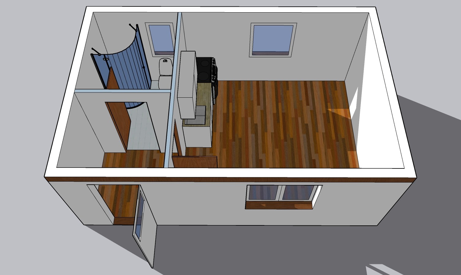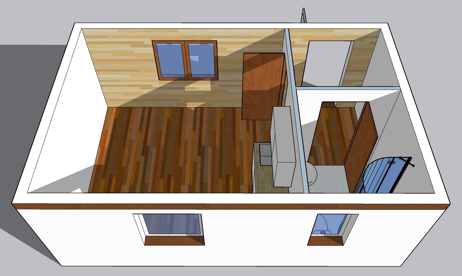 | Rozvržení: | obývací pokoj s kuchyňským koutem, koupelna, WC |