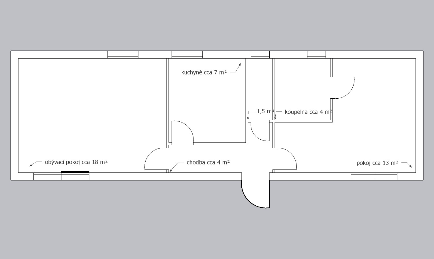 Rozměry: 13,39 x 4,19 (56m2)