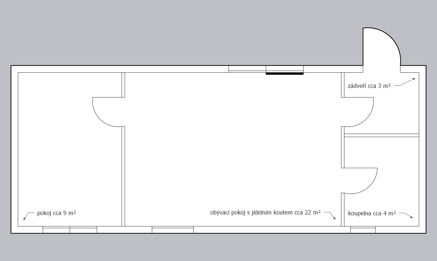| Rozměry: | 10,2 x 4,2 (cca 43m2) |