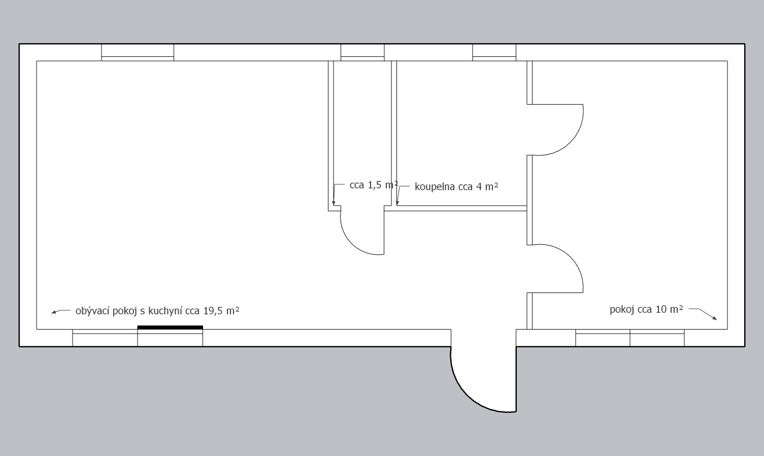 Rozměry: 10,2 x 4,2 (cca 43m2)