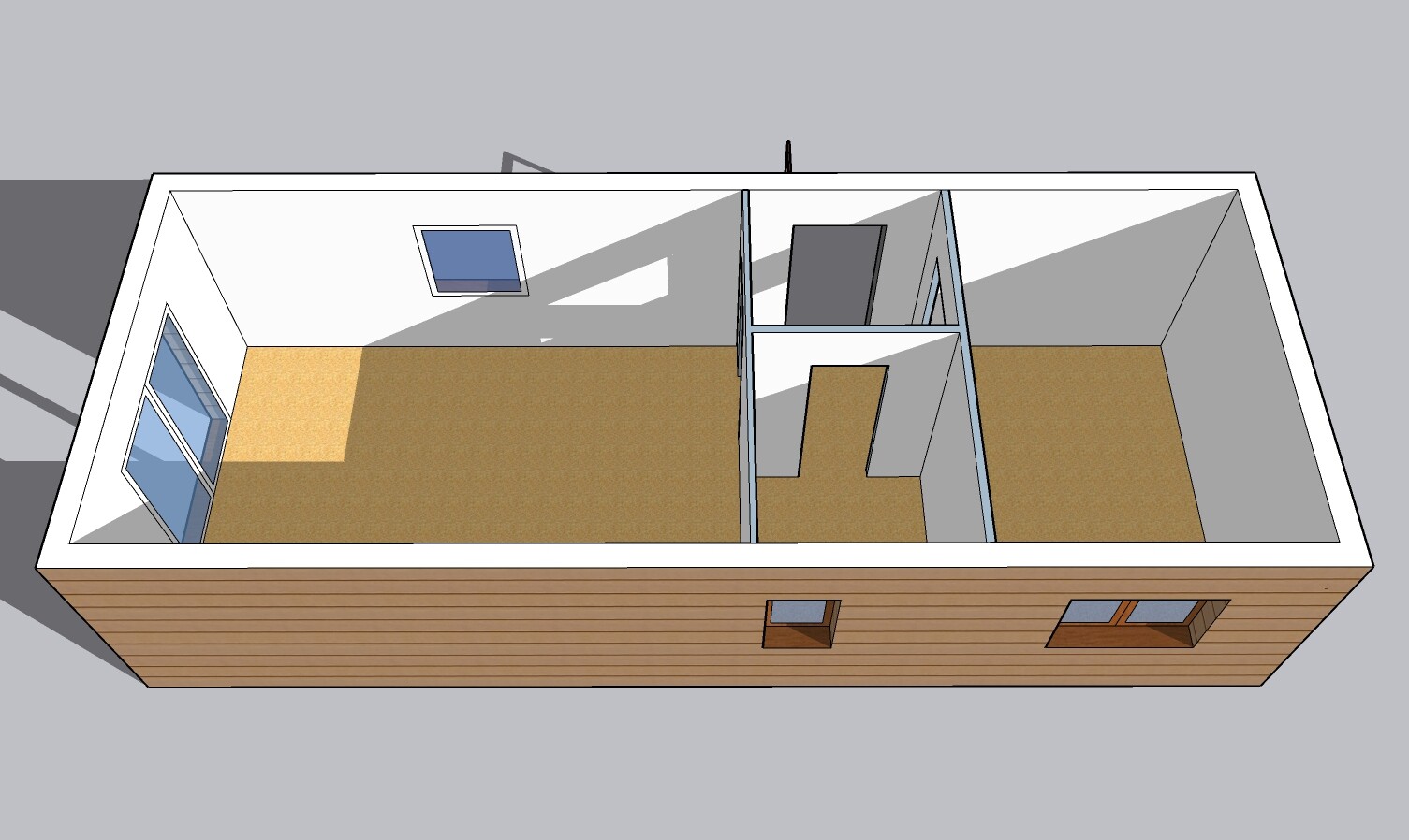 Výbava: Nový mobilheim jako holobyt, dřevěný obklad, vnitřní stěny sádrokarton, strop dřevěný obklad, možnost nainstalování podlahy, obložek a vnitřních dveří, koupelnového vybavení, kuchyně