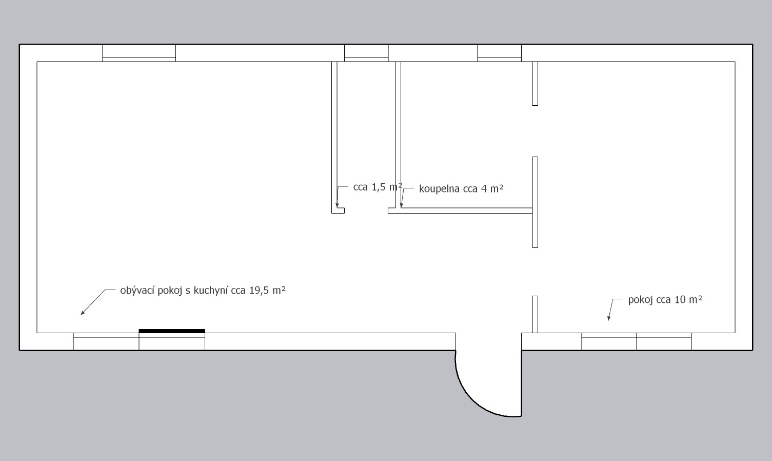 Rozměry: 10,2 x 4,2 (cca 43m2)