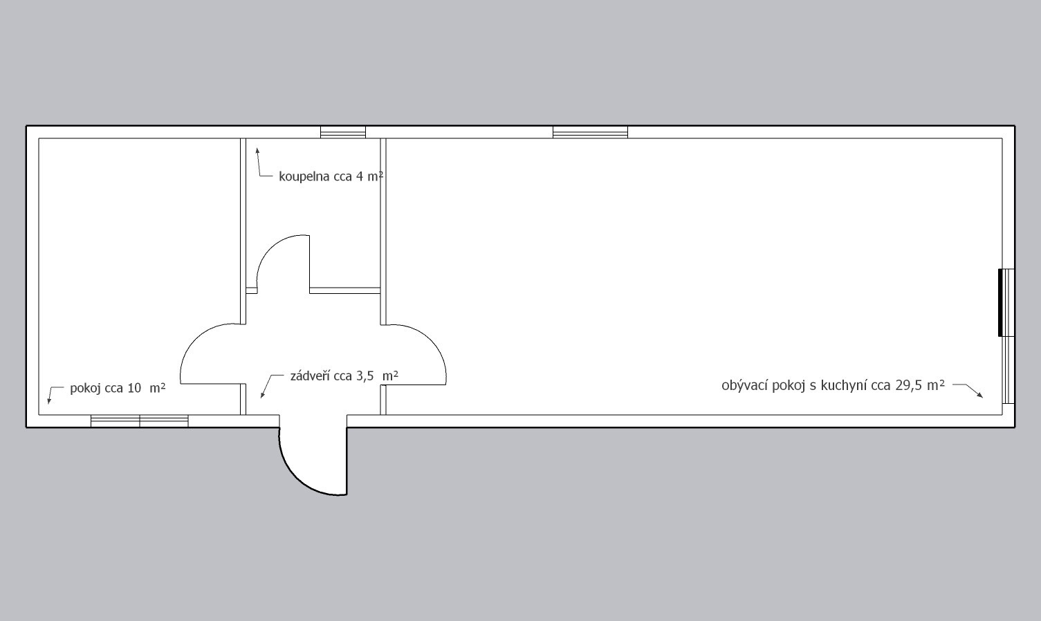| Rozměry: | 13,19 x 4,19 (cca 55m2) |