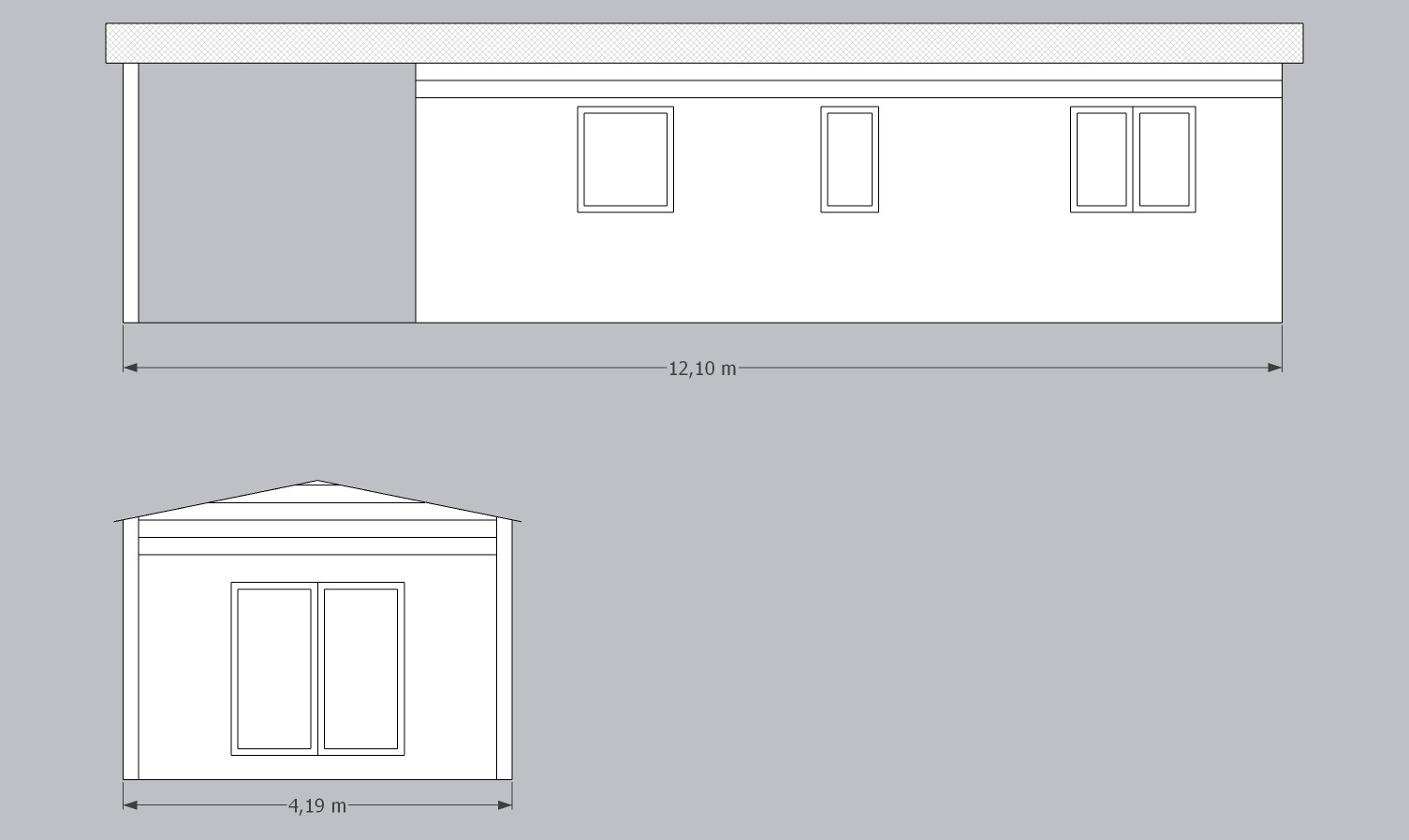 Rozměry: 12,1x 4,19m (cca 50m2)