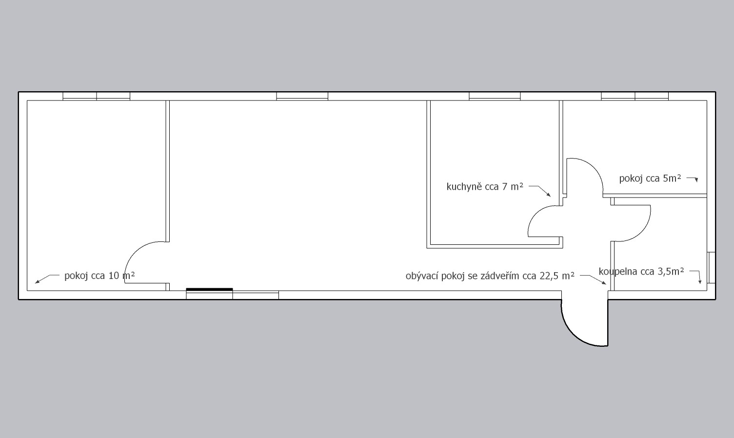 Rozvržení: 2 ložnice, obývací pokoj, kuchyně, koupelna