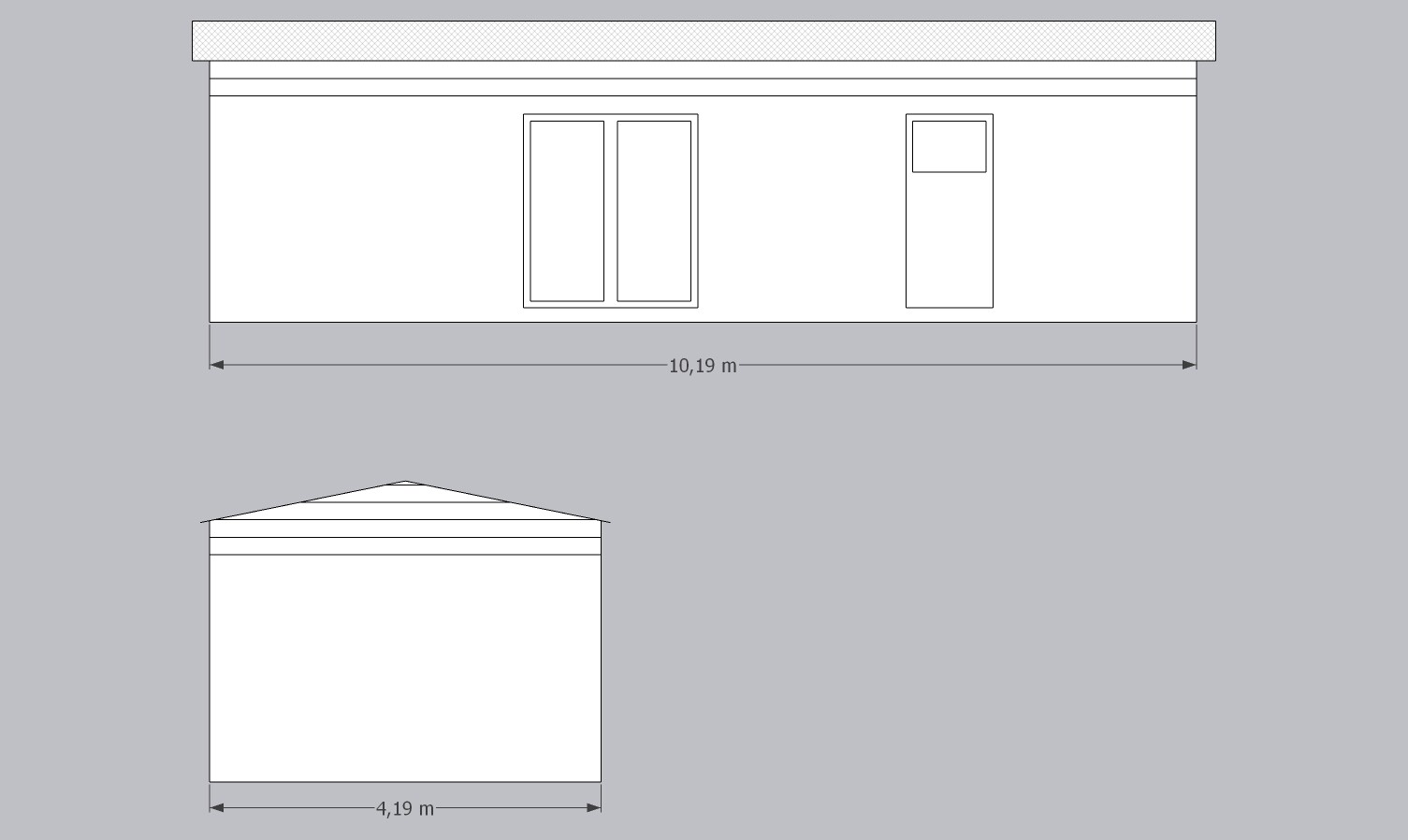 Rozměry: 10,2 x 4,2 (cca 43m2)