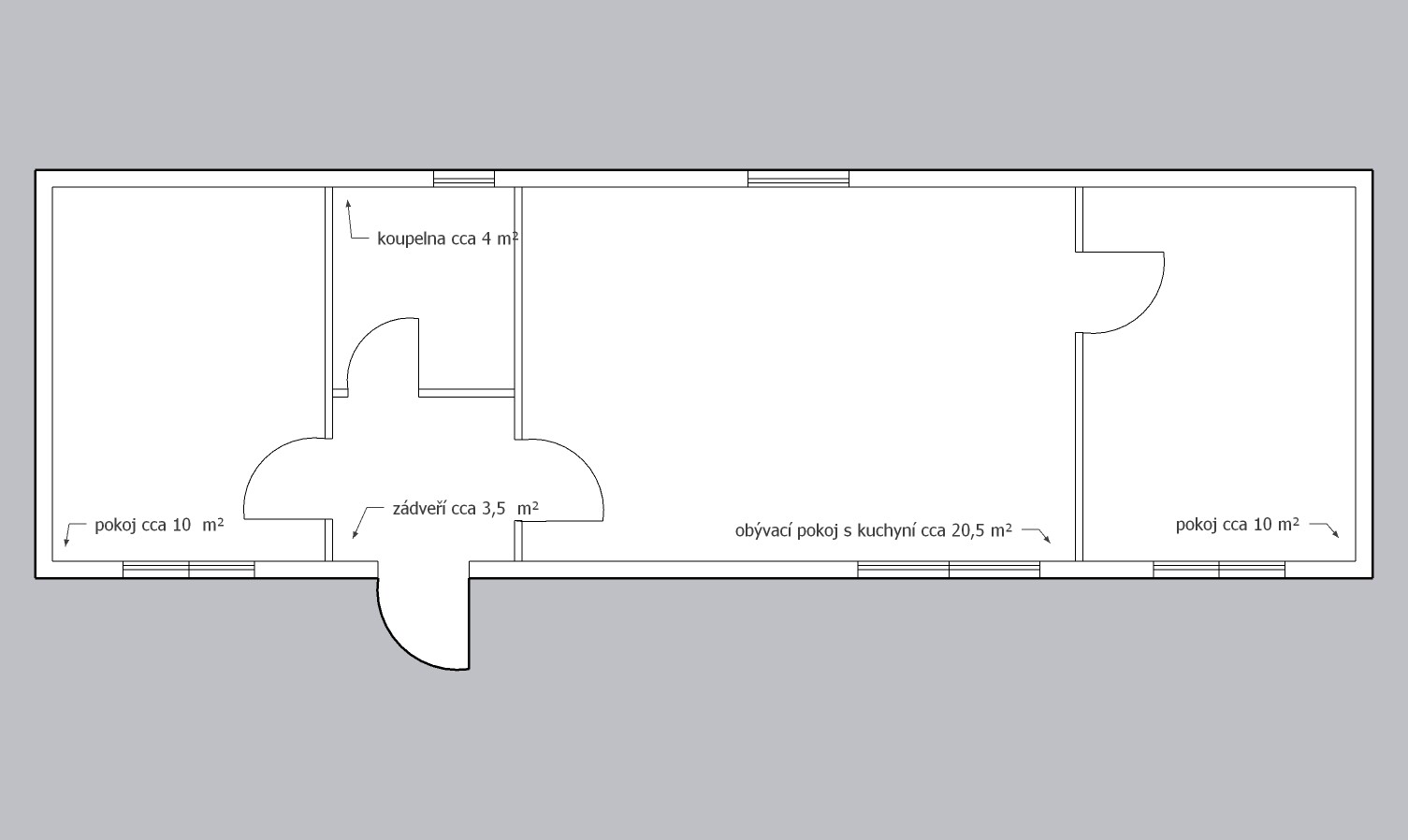 Rozměry: 13,19 x 4,19 (cca 55m2)