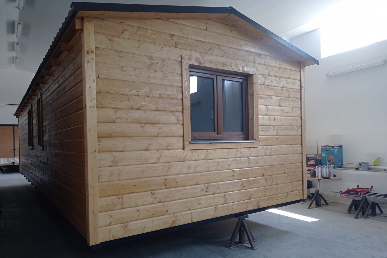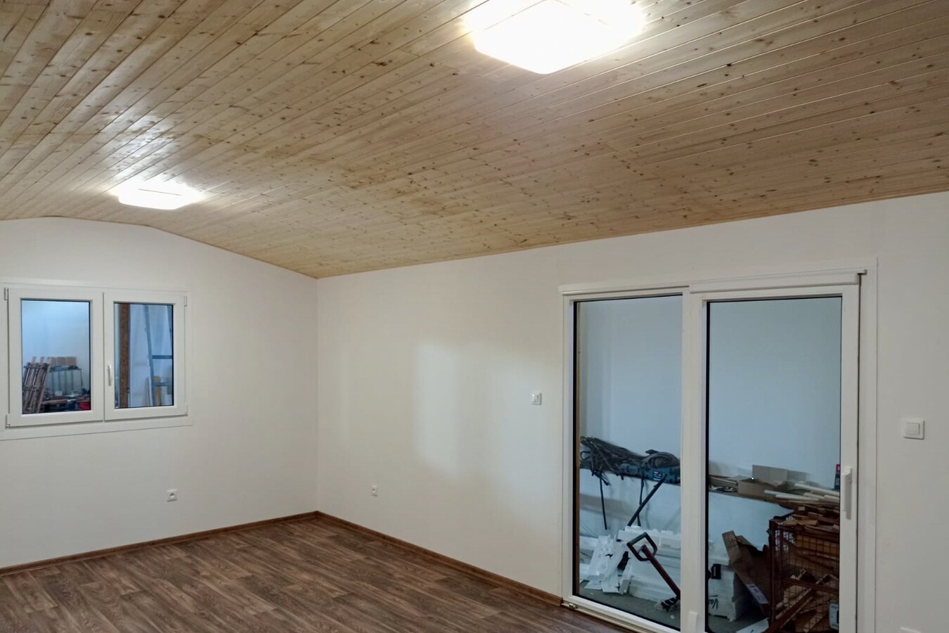 Výbava: Nový, dřevěný obklad, vnitřní stěny sádrokarton, strop dřevěný obklad, podlaha zátěžové lino, kuchyně, (dřez, digestoř, varná deska s troubou), koupelna (WC, umyvadlo, sprchový box, bojler 80l), síla vnějších stěn cca 17 cm, podlahy 15 cm, střecha 24 cm