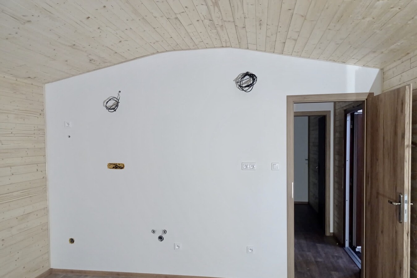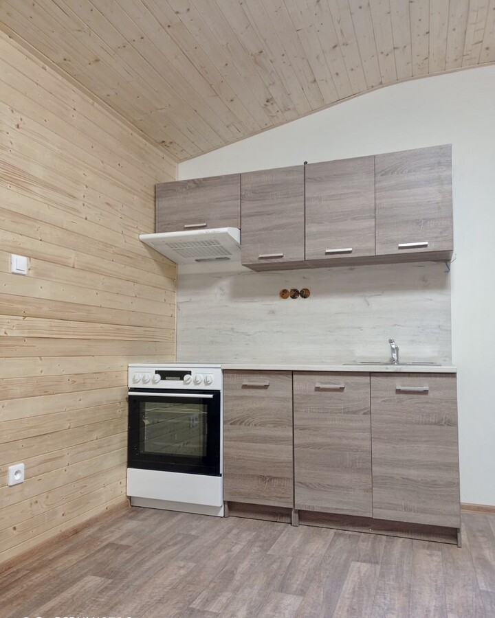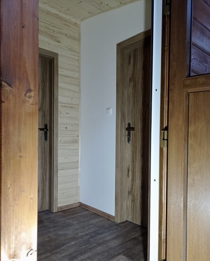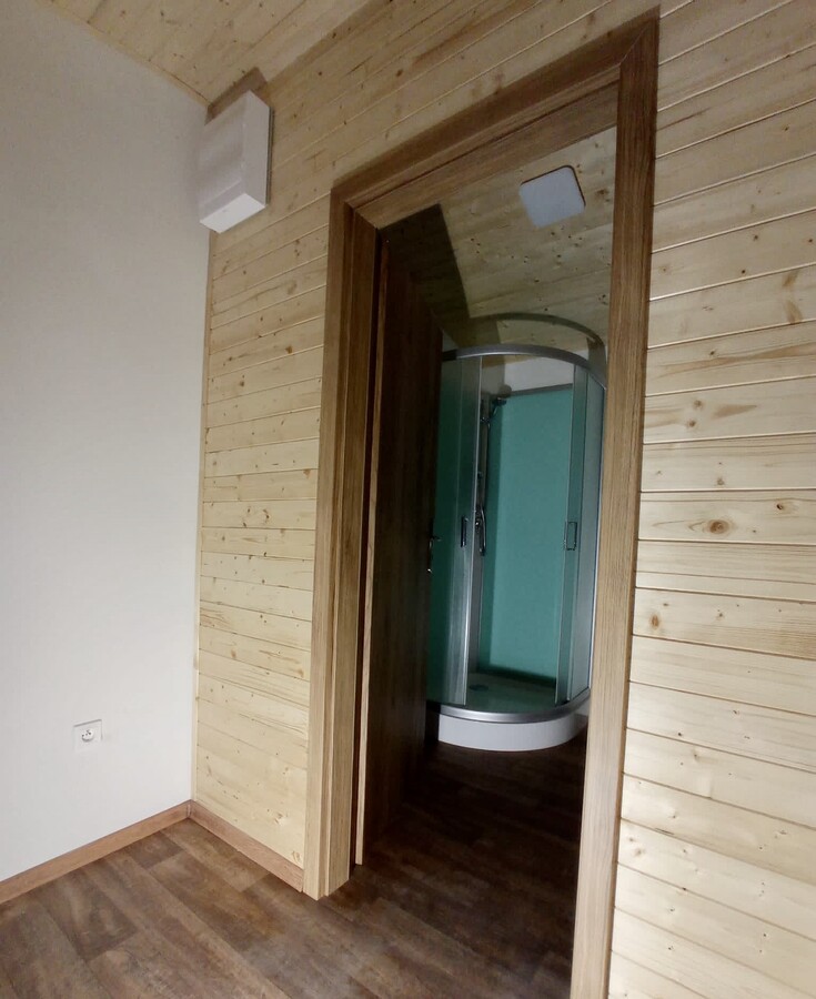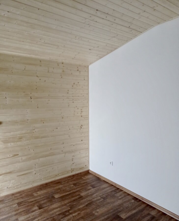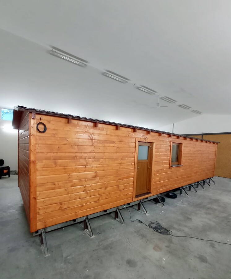 | Výbava: | Nový, dřevěný obklad, vnitřní stěny sádrokarton v kombinaci s dřevěným obkladem, strop dřevěný obklad, podlaha zátěžové lino, kuchyně, (dřez, digestoř, varná deska s troubou), koupelna (WC, umyvadlo, sprchový box, bojler 80l) |