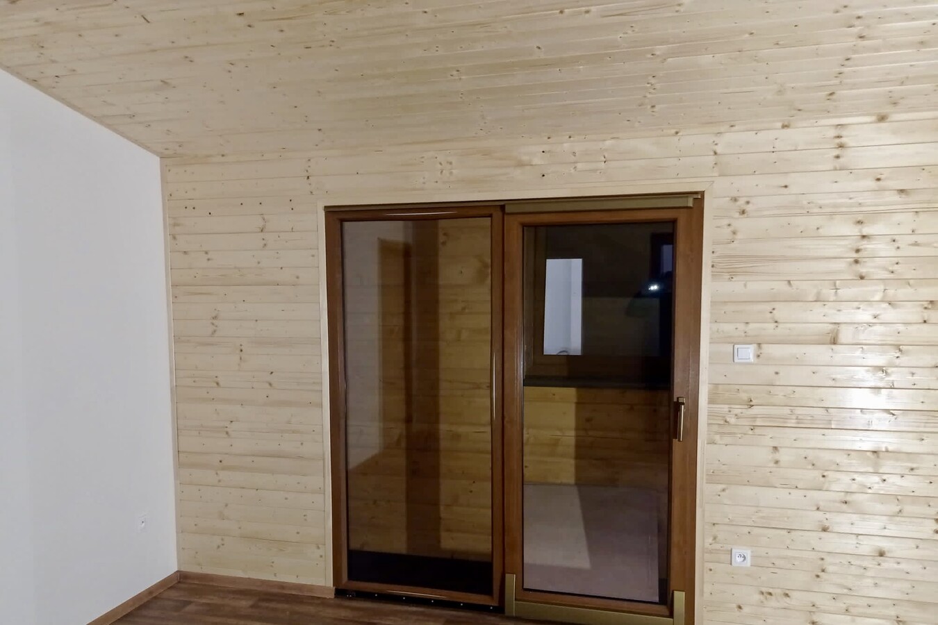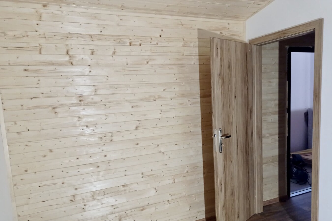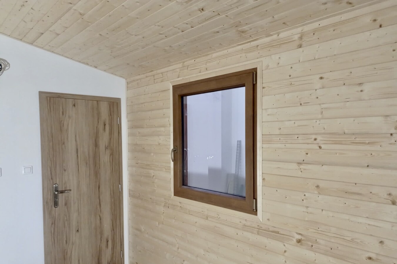 | Výbava: | Nový, dřevěný obklad, vnitřní stěny sádrokarton v kombinaci s dřevěným obkladem, strop dřevěný obklad, podlaha zátěžové lino, kuchyně, (dřez, digestoř, varná deska s troubou), koupelna (WC, umyvadlo, sprchový box, bojler 80l) |
